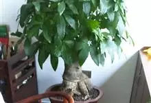 瓜栗 Walp. ),俗称发财树,木棉科小乔木,高4-5米,树冠较松散,幼枝栗褐色,无毛。小叶具短柄或近无柄。花单生枝顶叶腋;花梗粗壮,被黄色星状茸毛,脱落;萼杯状,近革质;花瓣淡黄绿色,狭披针形…全部>>