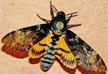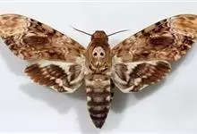 鬼脸天蛾,是鳞翅目天蛾科面形天蛾属动物。成虫翅展100~125毫米,体黑褐色;胸背有骷髅形斑纹;卵圆球形,直径约2毫米,淡黄绿色,表面光滑;老熟幼虫体长70~90毫米,蛹体长约56毫米;前翅为褐色,…全部>>