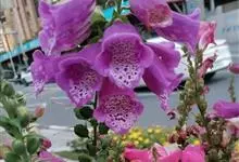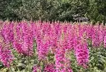 毛地黄是车前科、毛地黄属一年生或多年生草本植物。株高0.5—1米,茎直立,少分枝,全株被灰白色短柔毛和腺毛叶基生,呈莲座状,卵圆形或卵状披针形。顶生总状花序,花冠钟状,紫红色,内面有浅白斑点。菊果卵形。…全部>>