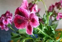 家天竺葵是牻牛儿苗科、天竺葵属多年生草本;株较高;茎直立,基部木质化,被开展长柔毛;叶互生三角状,宽卵形或肾形,基部心形或平截,具不规则锐锯齿;花梗长柔毛和腺毛;萼片披针,花冠粉红、淡红、深红或白色。…全部>>