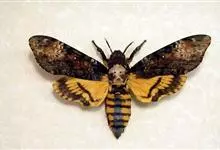 鬼脸天蛾,是鳞翅目天蛾科面形天蛾属动物。成虫翅展100~125毫米,体黑褐色;胸背有骷髅形斑纹;卵圆球形,直径约2毫米,淡黄绿色,表面光滑;老熟幼虫体长70~90毫米,蛹体长约56毫米;前翅为褐色,…全部>>