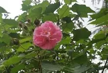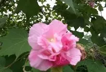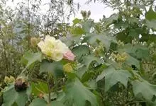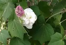 木芙蓉,锦葵科木槿属落叶灌木或小乔木。小枝上有细绒毛;叶片为卵状心形,托叶为披针形,常早落;花单生,花萼为钟形,花冠初为白色或淡红色,后逐渐变为深红色;果实为扁球形,有淡黄色的毛附着。花期8到10月。…全部>>