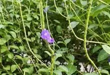 蓝花藤是马鞭草科、蓝花藤属木质藤本,长达5米,叶对生,革质,触之粗糙,椭圆状长圆形或卵状椭圆形,总状花序顶生,下垂,花蓝紫色,花期4-5月。 蓝花藤原产古巴,…全部>>