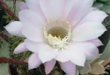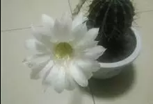 仙人球花 仙人掌科,仙人球属。植株单生或成丛。幼株球形,老株长成圆筒状,高可达75厘米,直径12-15厘米。球体暗绿色,具棱11-12。刺锥状,黑色,长1-1.5厘米。花着生于球体侧方,大型嗽喇叭状…全部>>