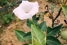 曼陀罗,茄科曼陀罗属一年生大型草本植物,全株光滑。有臭气;叶呈广卯形,边缘具不规则波状浅齿裂;花单生于枝杖间或叶腋,直立,有短梗;花萼是筒状裂片三角形,颜色为白色或淡紫色;果实为蒴果卵状,…全部>>