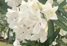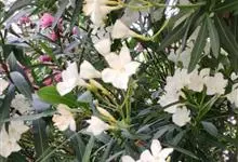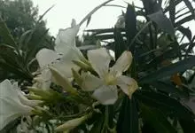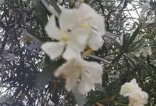 白花夹竹桃是夹竹桃科、夹竹桃属植物夹竹桃的栽培品种。常绿直立大灌木,枝条灰绿色;嫩枝条具稜,被微毛,老时毛脱落。叶3-4枚轮生,下枝为对生,叶面深绿,叶背浅绿色;侧脉纤细平行与中脉成直角;叶柄扁平,…全部>>