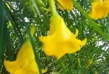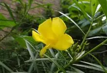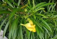 黄花夹竹桃K. Schum.),又名“酒杯花”“柳木子”“黄花状元竹”,是夹竹桃科,黄花夹竹桃属下的常绿乔木植物。高达5m,全株无毛,树皮棕褐色;叶互生,近革质,线形或线状披针形;花大,黄色,具香味,…全部>>