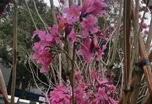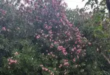 夹竹桃,又名红花夹竹桃、欧洲夹竹桃,是夹竹桃科夹竹桃属的一种常绿直立大灌木,枝条灰绿色,含水液。叶披针形,3叶轮生。聚伞花序顶生,花冠粉红至深红色,花冠漏斗状,有特殊香味。蓇葖果,圆柱形。种子长圆形,…全部>>