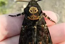 鬼脸天蛾,是鳞翅目天蛾科面形天蛾属动物。成虫翅展100~125毫米,体黑褐色;胸背有骷髅形斑纹;卵圆球形,直径约2毫米,淡黄绿色,表面光滑;老熟幼虫体长70~90毫米,蛹体长约56毫米;前翅为褐色,…全部>>