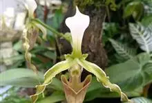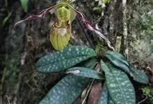 兜兰是兰科兜兰属的多年生草本植物。根茎粗状,直径3~4毫米,有很多须根;叶基生,叶片肉质增厚,排成紧密2列,叶片呈长圆形,表面有极短柔毛;总状花序,粉白色,花葶直立或倾斜,深绿色或褐色,花瓣大,呈唇形,…全部>>