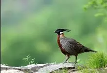 血雉雉科血雉属鸟类,别名血鸡、松花鸡,血雉的雄鸟大覆羽、尾下覆羽、尾上覆羽、脚、头侧、腊膜为红色,故称血雉。其别名甚多,各地皆异。在甘肃,因其胸侧和翅上覆羽沾绿,被称为“绿鸡”;因其羽毛形似柳叶,…全部>>