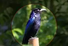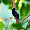 和平鸟中型鸟类,体长24~28厘米。眼红色,嘴、脚黑色。雄鸟从头顶到尾上覆羽等整个上体辉蓝色具紫色光泽,其余体羽黑色。雌鸟通体铜蓝色,仅飞羽黑褐色。常见的低地留鸟,…全部>>