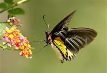 荧光裳凤蝶是凤蝶科裳凤蝶属的一种大型蝴蝶,该物种共有3个亚种。该蝶飞翔的时候姿态优美,前翅黑色,后翅金黄色和黑色交融的斑纹在阳光照射下金光灿灿,显得华贵美丽。幼虫寄主为多种马兜铃属的植物,取食马兜铃…全部>>