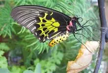 金裳凤蝶是凤蝶科、裳凤蝶属的动物。金裳凤蝶身体呈黑色,头、颈和胸侧有红毛,腹部有黑黄两色相间条纹,雄蝶前翅黑色,具黑天鹅绒光泽,各脉两侧灰白色,后翅金黄色,各室外缘有等腰三角形黑斑1枚,斑内侧有晕,…全部>>