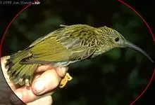 纹背捕蛛鸟:为太阳鸟科捕蛛鸟属的鸟类。是太阳鸟科中体型较大的一种,体重25-45克,体长160-210毫米。嘴粗长而尖且向下弯曲。上体橄榄黄色具黑色中央斑纹。下体淡黄白色满布黑色纵纹,尾具黑色次端斑。…全部>>