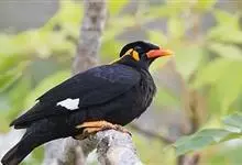 金冠树八哥为椋鸟科树八哥属的鸟类。体长约23厘米,闪辉黑色。特征为具翼斑及颏黄色,脸颊裸露皮肤粉黄色。分布于印度、缅甸、泰国以及中国大陆的云南、广东等地。…全部>>