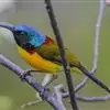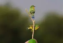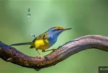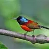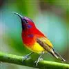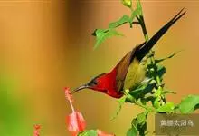 绿喉太阳鸟:共有9个亚种。小型鸟类,雄鸟体长13-15厘米、雌鸟10-12厘米。雄鸟前额至后颈、颏和喉辉绿色,头侧黑色,颈侧和背暗红色,两肩、下背橄榄绿色,腰鲜黄色,尾上覆羽和中央尾羽暗绿色,…全部>>