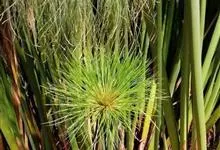 纸莎草是莎草科、莎草属的植物,具有粗壮的根状茎,高达2-3米,茎秆簇生,粗壮,直立,钝三棱形。叶退化呈鞘状,茎秆顶端着生总苞片,呈伞状簇生,总苞片叶状,披针形,顶生花序伞梗极多,细长下垂。瘦果灰褐色,…全部>>