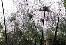 纸莎草是莎草科、莎草属的植物,具有粗壮的根状茎,高达2-3米,茎秆簇生,粗壮,直立,钝三棱形。叶退化呈鞘状,茎秆顶端着生总苞片,呈伞状簇生,总苞片叶状,披针形,顶生花序伞梗极多,细长下垂。瘦果灰褐色,…全部>>
