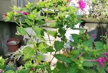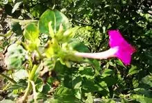 即紫茉莉,英文名:Four-o'clock,Marvel of Peru,为紫茉莉科、紫茉莉属多年生草本植物,一年生栽培。株高50~80cm。根粗壮,茎多分枝而散生。叶对生,卵形或心脏形。花数朵簇生…全部>>