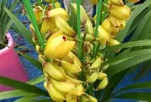 大花蕙兰,兰科兰属的常绿附生草本植物。大花蕙兰的假鳞茎椭圆形,粗大;根多为肉质圆柱状,粗壮肥大,大都呈灰白色;叶宽而长,下垂,浅绿色有光泽;花亭斜生,稍弯曲;花大,色泽艳丽,…全部>>