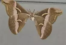 眉纹天蚕蛾,是天蚕蛾科樗蚕蛾属的昆虫。展翅宽12-14cm,翅膀为褐色,翅膀中央具有眉形淡色斑纹,翅端类似蛇头状的斑纹是其独有特征。眉纹天蚕蛾是中国独有生物,一般只出现在天山山脉地区,…全部>>