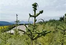 油麦吊云杉 Pritz. var. complanata Cheng ex Rehd.)是松科,云杉属麦吊云杉的变种,高可达30米,树皮淡灰色或灰色,裂成薄鳞状块片脱落;,大枝平展,树冠尖塔形;侧…全部>>
