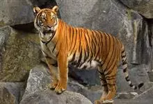 印度支那虎:简称印支虎。是老虎的一个亚种。雄性平均体重185千克,体长2.7米。与孟加拉虎相比,它们的体形较小,毛色更深,身上的条纹更短、更窄;而胃部、咽喉和两颊有较大的白色斑痕。…全部>>