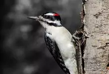 大斑啄木鸟隶属鸟纲鴷形目啄木鸟科。雄鸟头顶黑色,枕部红色,眼先、颊部和耳羽白色,颈部污白色,下嘴基部至后颈有1道黑色条纹并与从颈侧延伸到胸侧的黑色条带相连,背和两翼黑色,肩部具1个大的白色斑块,…全部>>