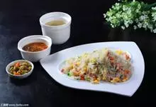 扬州炒饭又名扬州蛋炒饭,是江苏省扬州市的一道传统名菜,属于淮扬菜,其主要食材有米饭、火腿、鸡蛋、虾仁等。扬州炒饭选料严谨、制作精细、加工讲究,而且注重配色。炒制完成后,…全部>>