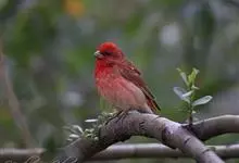 普通朱雀是雀形目雀科朱雀属鸟类,又名红朱雀、马料、青麻料。雄鸟上体红色,下体淡红色;头部、喉部、胸部及腰部亮红色;背部褐色染红色;两翼及尾黑褐色,羽缘染红色。雌鸟上体橄榄褐色,下体近白色,…全部>>