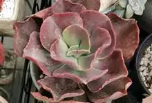 女王花笠,又名扇贝石莲花、女王花舞笠,是景天科拟石莲花属的多肉植物。由美国加利福尼亚州的育种师Dick Wright于1964年培育。特征是呈大波浪状褶皱的红色叶缘和气质高贵的粉紫色调。…全部>>