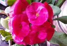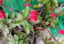 虎刺梅:别称铁海棠,是蔓生灌木植物。茎多分枝,长60-100厘米,直径5-10毫米,具纵棱,密生硬而尖的锥状刺,刺长1-1.5厘米,直径0.5-1.0 毫米,常呈3-5列排列于棱脊上,呈旋转。叶互生…全部>>