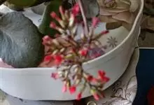 仙女之舞是景天科、伽蓝菜属植物。常绿肉质灌木,株高可达2-3米。幼株茎上有毛。叶有柄;单叶对生,阔卵状三角形,肉质;新叶开展,老叶正面凹、背面圆凸,缘具稀锯齿,橄榄绿色至灰绿色,被稠密的灰白色毛。…全部>>