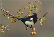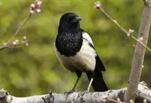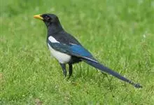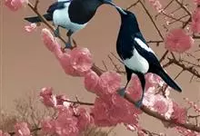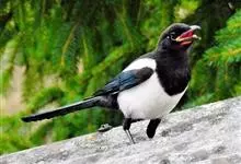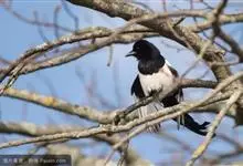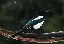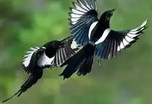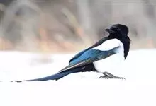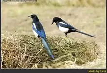 喜鹊:是鸦科、鹊属的一种鸟类。共有11个亚种。体长40-50厘米,雌雄羽色相似,头、颈、背至尾均为黑色,并自前往后分别呈现紫色、绿蓝色、绿色等光泽,双翅黑色而在翼肩有一大形白斑,尾远较翅长,呈楔形,…全部>>