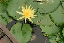 黄睡莲是睡莲科,睡莲属植物。为多年生草本宿根性水生花卉。叶近圆形,宽12-19厘米,具不明显的波状缘。上面深绿色,有褐色斑纹,下面红褐色,有黑色小斑点。是极具观赏价值的莲花种类,常用作观赏植物。…全部>>