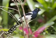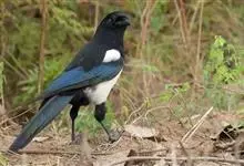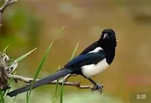 喜鹊:是鸦科、鹊属的一种鸟类。共有11个亚种。体长40-50厘米,雌雄羽色相似,头、颈、背至尾均为黑色,并自前往后分别呈现紫色、绿蓝色、绿色等光泽,双翅黑色而在翼肩有一大形白斑,尾远较翅长,呈楔形,…全部>>