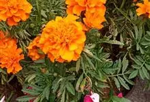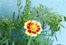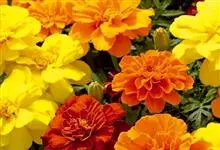 万寿菊是菊科万寿菊属一年生草本植物,别名孔雀菊、缎子花、臭菊花、西番菊、红黄草、小万寿菊、臭芙蓉、孔雀草。万寿菊茎近基部分枝。叶羽状分裂,长5-10厘米,宽4-8厘米,裂片长椭圆形或披针形,具锐齿,…全部>>