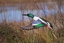 琵嘴鸭:属中型鸭类,个体比绿头鸭稍小,体长43-51厘米,体重0.5千克左右。雄鸭头至上颈暗绿色而具光泽,背黑色,背的两边以及外侧肩羽和胸白色,且连成一体,翼镜金属绿色,腹和两胁栗色,脚橙红色,嘴黑色,…全部>>