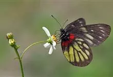 报喜斑粉蝶是粉蝶科斑粉蝶属的一种动物,又名红肩粉蝶、藤粉蝶等。幼虫群集性很强,从同一卵块孵化出的幼虫,幼龄期全部群集在一起取食,高龄幼虫常分散成小群。幼虫群集危害叶片,造成秃枝,严重者可将树吃成光杆,…全部>>