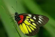 报喜斑粉蝶是粉蝶科斑粉蝶属的一种动物,又名红肩粉蝶、藤粉蝶等。幼虫群集性很强,从同一卵块孵化出的幼虫,幼龄期全部群集在一起取食,高龄幼虫常分散成小群。幼虫群集危害叶片,造成秃枝,严重者可将树吃成光杆,…全部>>
