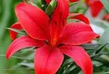 山丹是百合科百合属的多年生草本植物。鳞茎卵形或圆锥形,鳞片长圆形或长卵形,白色;叶散生茎中部,线形,边缘有乳头状突起;花单生或数朵成总状花序,花鲜红色,常无斑点,花被片反卷,…全部>>