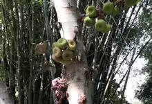 大果榕是桑科榕属的小乔木,株高可达10米;幼枝被柔毛;叶互生,宽卵状心形或近圆形;雄花无梗、匙形、花丝长,雌花生于雌株榕果内,子房白色;榕果簇生于树干基部或老茎短枝上、扁球形或陀螺形,…全部>>