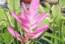 姜荷花为姜科姜黄属的多年生球根草本。株高30-80厘米;叶基生,长椭圆形,革质亮绿色,顶端渐尖,中脉为紫红色;穗状花序从卷筒状的心叶中抽出,上部苞叶桃红色,阔卵形,下部为蜂窝状绿色苞片;花期6-10月。…全部>>