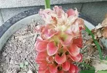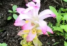 莪术姜科姜黄属多年生草本植物。主根茎陀螺状,淡黄色至白色;叶圆状长圆形至长圆状披针形,中部常有紫斑;花亭自根茎先叶发出,穗状花序阔圆形;苞片卵形,下部绿白色至绿色,上部紫红色;花冠白色或粉红色,…全部>>