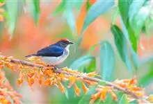 朱背啄花鸟:体重6-8克,体长81-97毫米。是一种小型的黑色及红色啄花鸟。雄鸟顶冠、背及腰猩红色,两翼、头侧及尾黑,两胁灰,下体余部白色。雌鸟上体橄榄色,腰及尾上覆羽猩红,尾黑。亚成鸟清灰色,嘴橘黄,…全部>>
