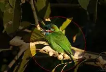 金喉拟啄木鸟,是须鴷科、拟啄木鸟属的鸟类。金喉拟啄木鸟为小型鸟类,体长19-24厘米。额深红色,头顶金黄色,后枕具一大块深红色斑,耳羽和头侧银灰色,上体草绿色,颏和上喉金黄色,下喉淡银灰色,…全部>>