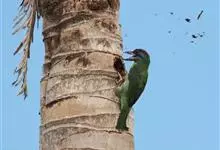 绿拟啄木鸟为鴷形目,须科,拟啄木属的一种。形较大拟啄木鸟略小,体长约260mm。头、颈及胸浅褐而具淡黄白色条纹;喉几为淡黄白色;身体余部草绿色。虹膜棕褐色,眼周裸露部黄色;嘴峰角黄色;跗跖和趾角黄…全部>>