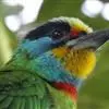 黑眉拟啄木鸟,为须䴕科、拟啄木鸟属的小型鸟类,体长20-25厘米,外形和金喉拟啄木鸟非常相似,但具粗著的黑色眉纹,头侧和耳覆羽以及下喉蓝色而不为银灰色,前颈两侧各有一块鲜红色斑。全部>>