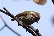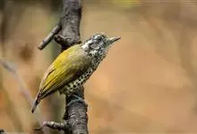 斑姬啄木鸟是鴷形目啄木鸟科姬啄木鸟属鸟类,又叫姬啄木鸟、小啄木鸟。体长9-10厘米。嘴尖而略粗壮,灰黑色;额棕色,向颈后逐渐过渡至橄榄绿色;眉纹白色,过眼纹黑褐色,其下有一白纹,…全部>>